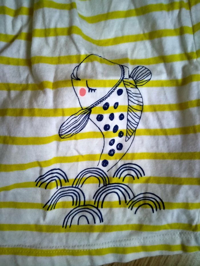 Débardeur blanc rayures jaunes. Poisson. Neuf. Dpam. Bébé 18 mois - photo numéro 4