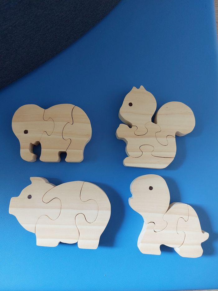 Bonjour, Vend lot de 4 mini puzzles animaux neufs 3 et 4 pièces simple à manipuler 1 tortue 1 éléphant 1 cochon 1 écureuil Dimensions 10x10 cm En Pin, bois naturel sans traitement Fait main✋️ Emballage soigné Possible à l'unité ou par 2 également. #puzzle #enfant #bébé #cadeau #fait main #handmade #animaux #wood #bois #naturel #jouet #toy #gift #play