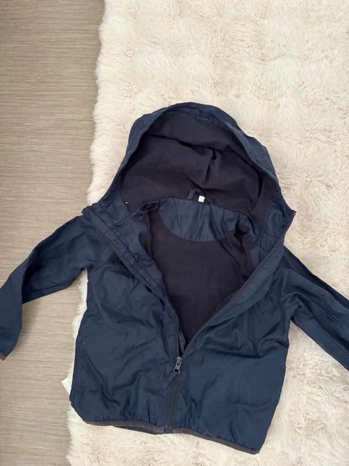 Veste coupe vent matière kway à l’extérieur et polaire à l’intérieur 3/4 ans peu porté bleu marine