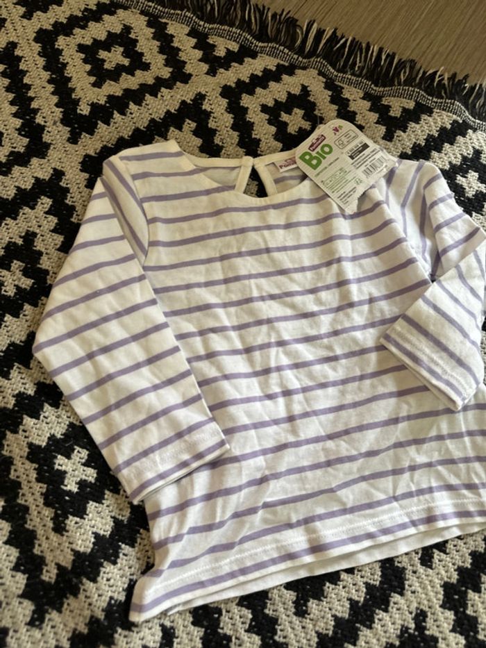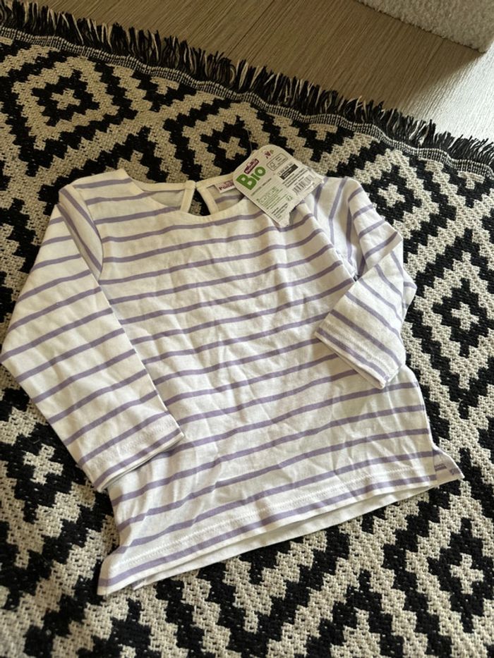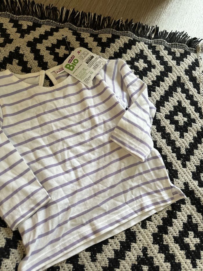 TEE shirt  bio manche longue blanc rayé violet - photo numéro 1