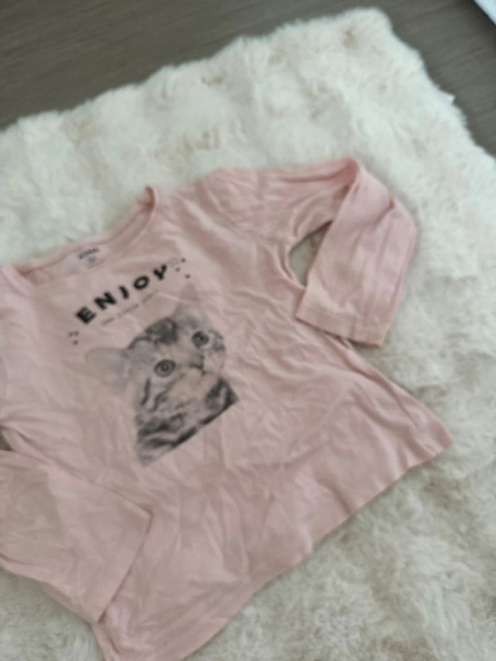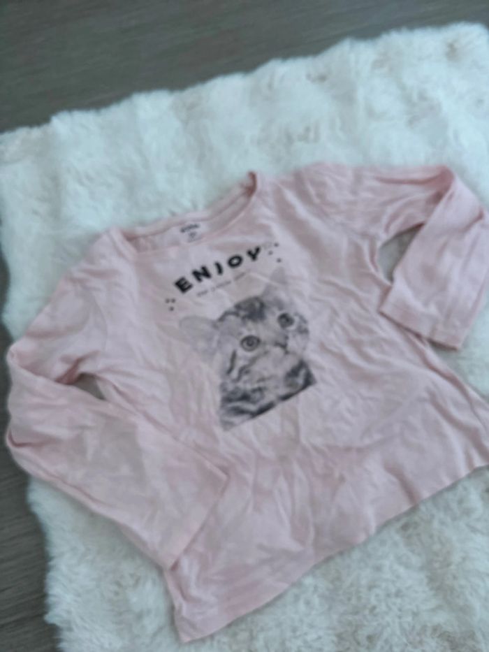Tee shirt manche longue chat rose 5 ans