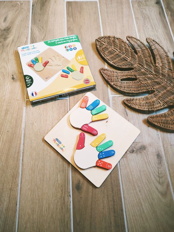 👋Jeu 2 en 1 Puzzle educatif Montessori je compte sur mes doigts en bois marque Aloya - photo numéro 1