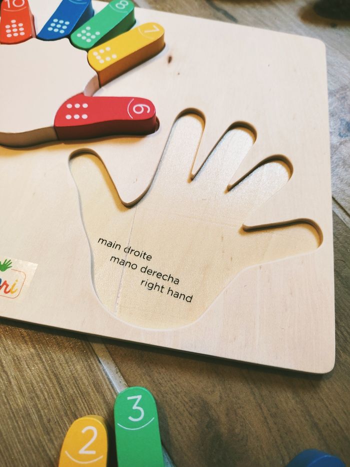 👋Jeu 2 en 1 Puzzle educatif Montessori je compte sur mes doigts en bois marque Aloya JB1379 🎀Apprendre à compter et reconnaître les doigts de la main 🎀Jouet neuf mais comportant un défaut de fabrication sur la main droite voir photo (petite rayure) ❇️N'hésitez pas à créer un lot pour économiser sur les frais de port❇️ Premier âge, Jouet bébé, Jouet d'activité, Jouet ludique, Jouet eveil, Mémorisation, Memoire, aptitude, motricité, jeu Adresse, Montessori, jeu bois, Jouet bois, Jouet vintage, Jeu adresse, jeu apprentissage, dextérité, jeu sensorielle, jeu educatif, activités et Jouet pour bébé, trier empiler, encastrer, jeux et jouets