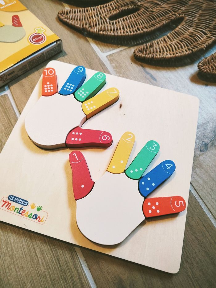 👋Jeu 2 en 1 Puzzle educatif Montessori je compte sur mes doigts en bois marque Aloya