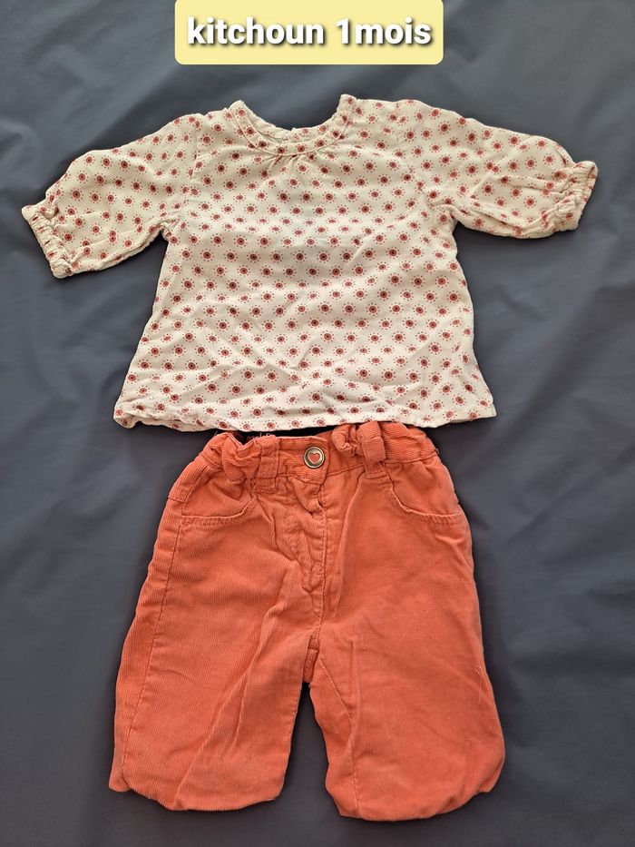 ensemble 1mois pantalon et chemise corail kitchoun bébé fille