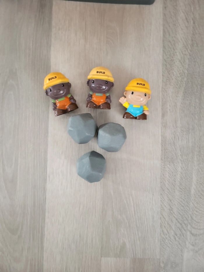 Jouet grue, travaux 3 bonhommes + 1 véhicule + 3 pierres