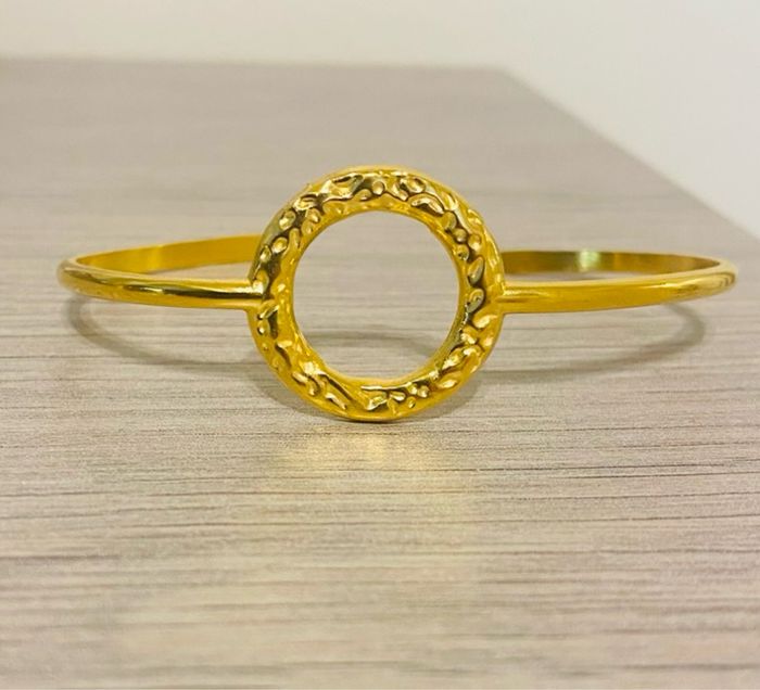 Bracelet épais jonc doré cercle martelée acier inoxydable - photo numéro 1