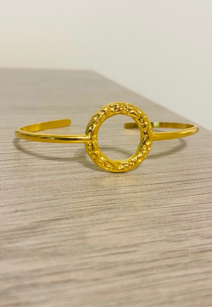 Bracelet épais jonc doré cercle martelée acier inoxydable