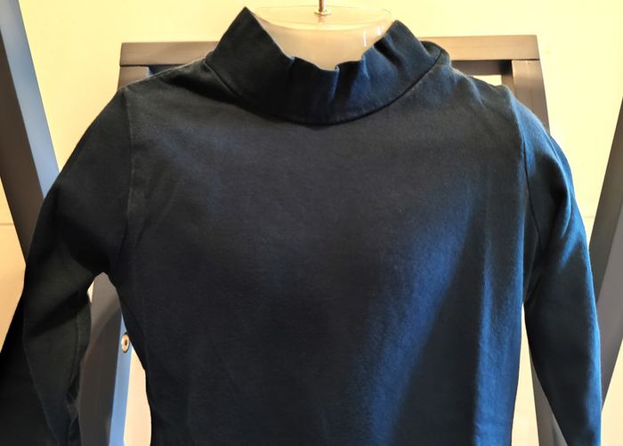 Sous pull bleu marine "bout'chou" taille 12 mois. 3 boutons pressions sur l'épaule pour le passage de la tête. En très bon état. D'autres vêtements bébé sont en vente dans mon dressing, réduction automatique sur les lots à partir de 2 articles achetés.