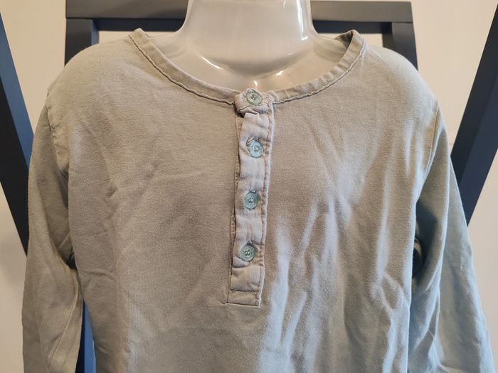 T-shirt manches longues "Bout'chou" taille 24 mois. Bleu clair avec 4 boutons sur le haut. En bon état. D'autres vêtements en 24 mois sont en vente dans mon dressing, réduction automatique de 10 à 20% sur les lots à partir de 2 articles achetés.