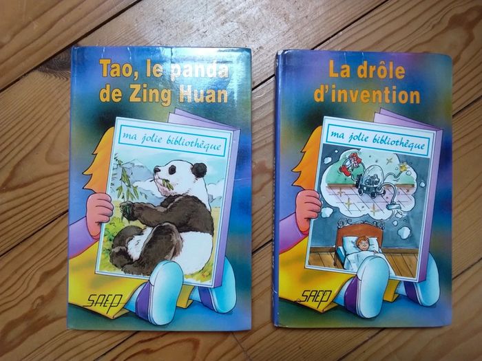 Lot de 2 livres pour lecteur de 5 à 9 ans : - la drôle d'invention - Tao le pande de Zing Huan Couvertures un peu abîmées
