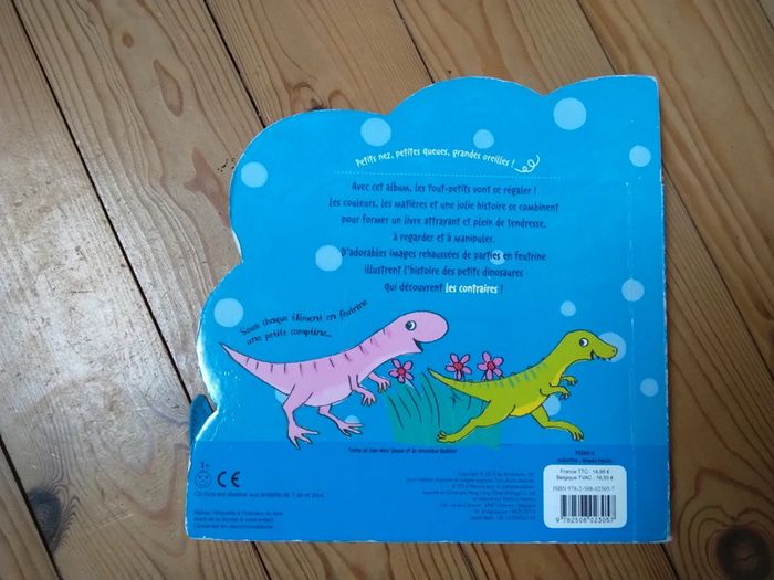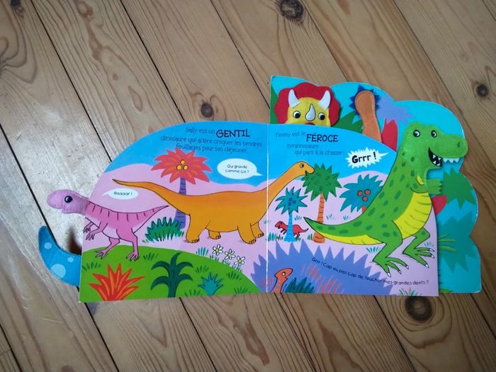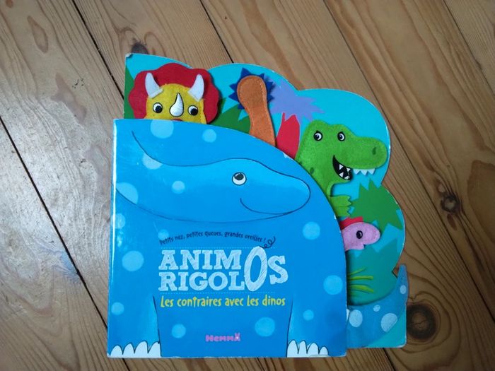 Livre cartonné avec têtes de dinosaures en feutrine Couverture un peu abîmée
