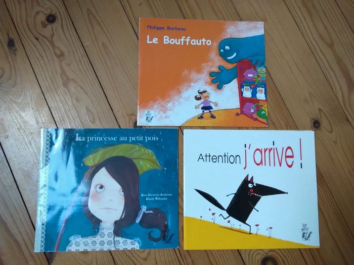 Lot de 3 livres plastifiés de la collection Lire c'est partir : - Attention j'arrive de Julie Parachini-Deny - Le bouffauto de Philippe Barbeau - La princesse aux petits pois d'Anderson