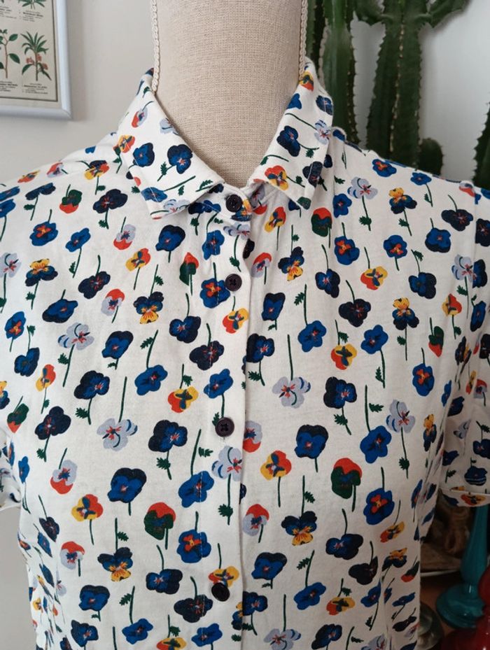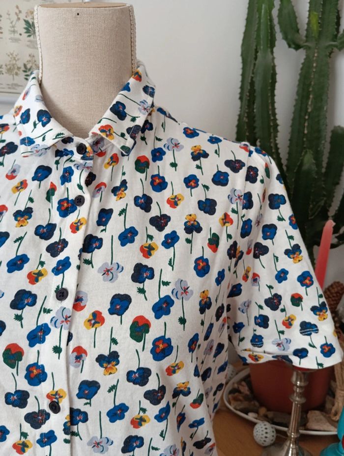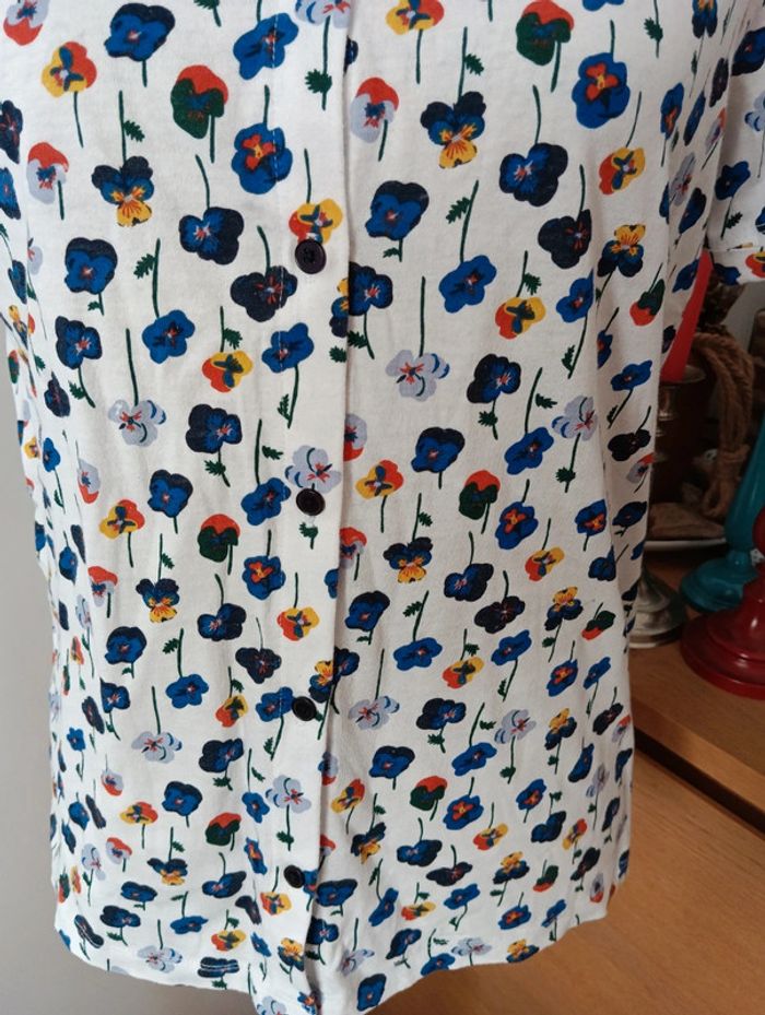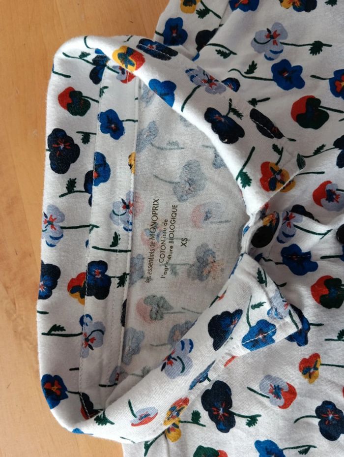 Top boutonné en coton stretch jersey fleuri Monoprix taille XS - photo numéro 7