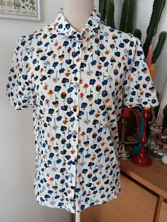 Top boutonné en coton stretch jersey fleuri Monoprix taille XS - photo numéro 1