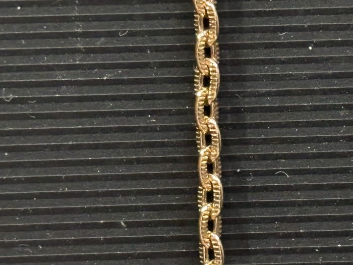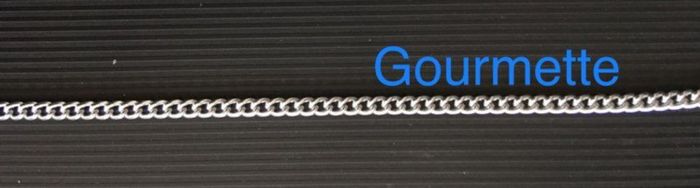Vends chaînes (au mètre) en métal Pour créer vos propres bijoux fantaisies (colliers pour pendentifs, bracelets, ...) ou autre. 3 modèles au choix : En métal ARGENTÉ : - Maille type gourmette Maillon env. 3 x 2 mm En métal DORÉ, 2 types : - Maille type gourmette (couleur or jaune brillant) Maillon env. 5 x 4 mm - Maille type forçat plat texturé (couleur or très clair) Maillon env. 3 x 4 mm Vendu 1€ par 2 mètres Me demander pour une annonce personnalisée en précisant le modèle et le nombre de mètres (je dispose de plusieurs mètres dans chaque type sauf pour la dorée forçat plat texturé - me demander ) . Attention : ce sont des chaînes « nues » sans fermoirs. N’hésitez pas à me demander si vous souhaitez plus de renseignements sur ces chaînes.