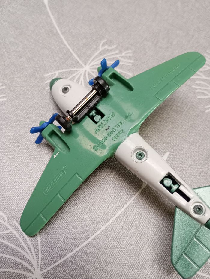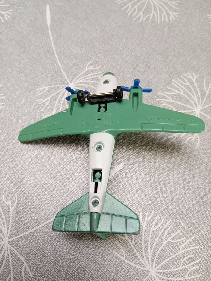 Avion en métal Matchbox (68982) de la marque Mattel; 2003 Bon état, présente quelques signes légers d'utilisation. Longueur : 10 cm.