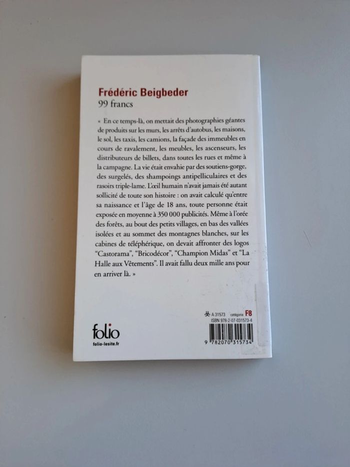 Livre en très bon état. Folio poche 99 F francs Frédéric Beigbeder