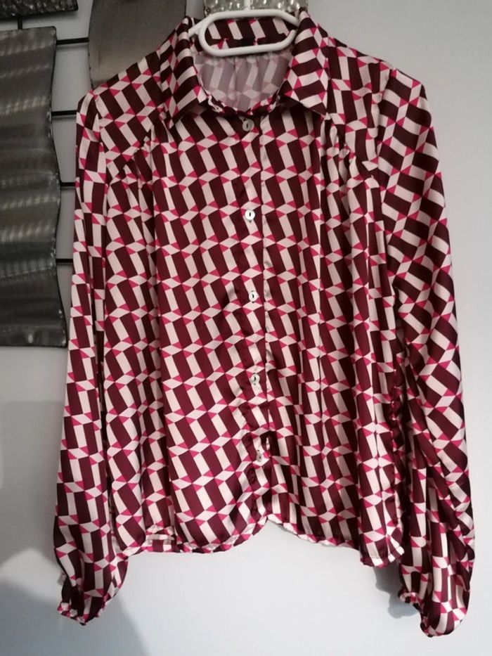 Chemise en satin vintage rose violet kiabi taille M - photo numéro 2
