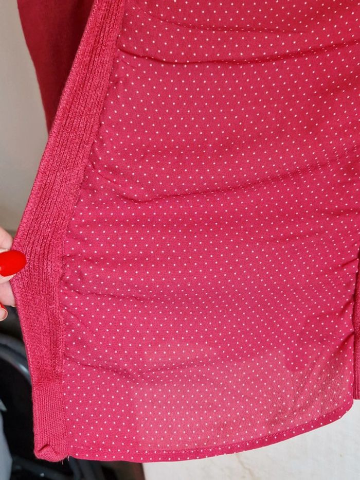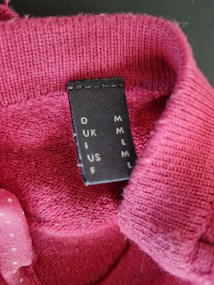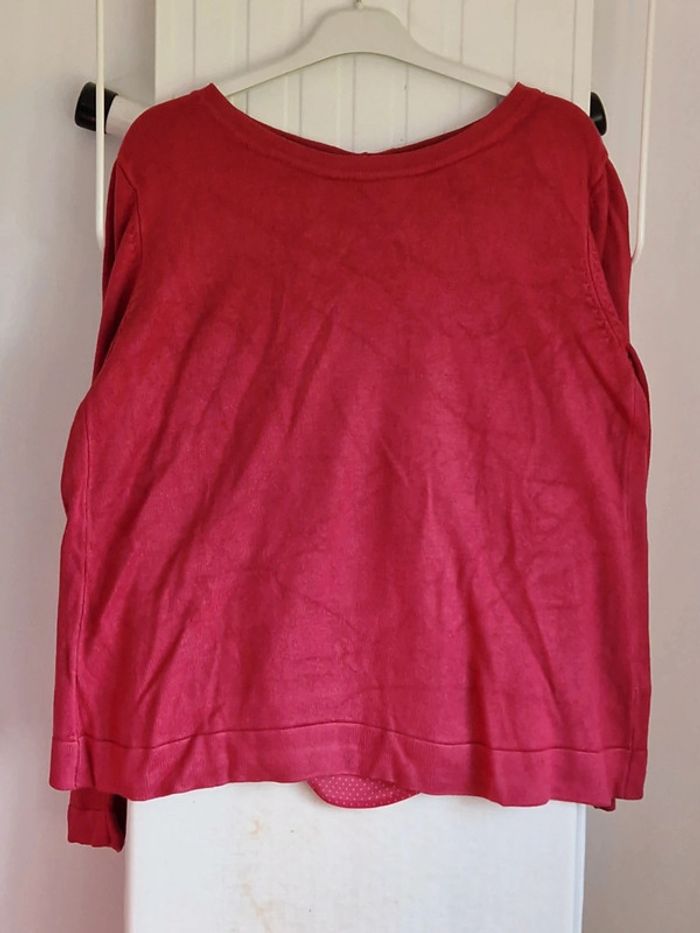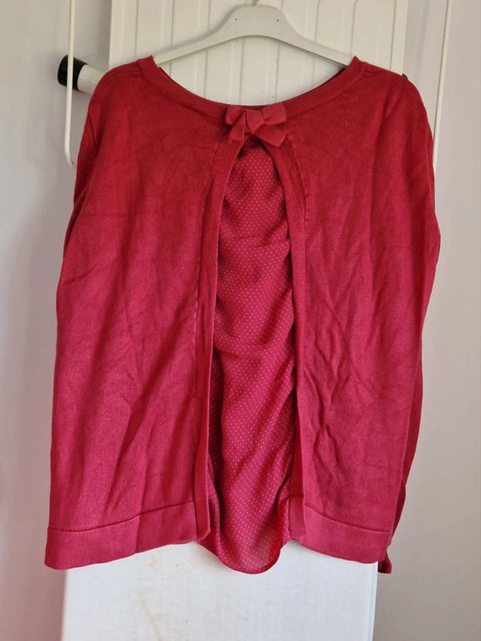 Pull femme avec jolis dos : noeud, ouverture et motif à pois blancs. Taille L Française. dimensions : hauteur épaule jusqu'en bas 57 cm largeur d'aisselle à aisselle 56 cm #szcarde #sarahzajacfemme40