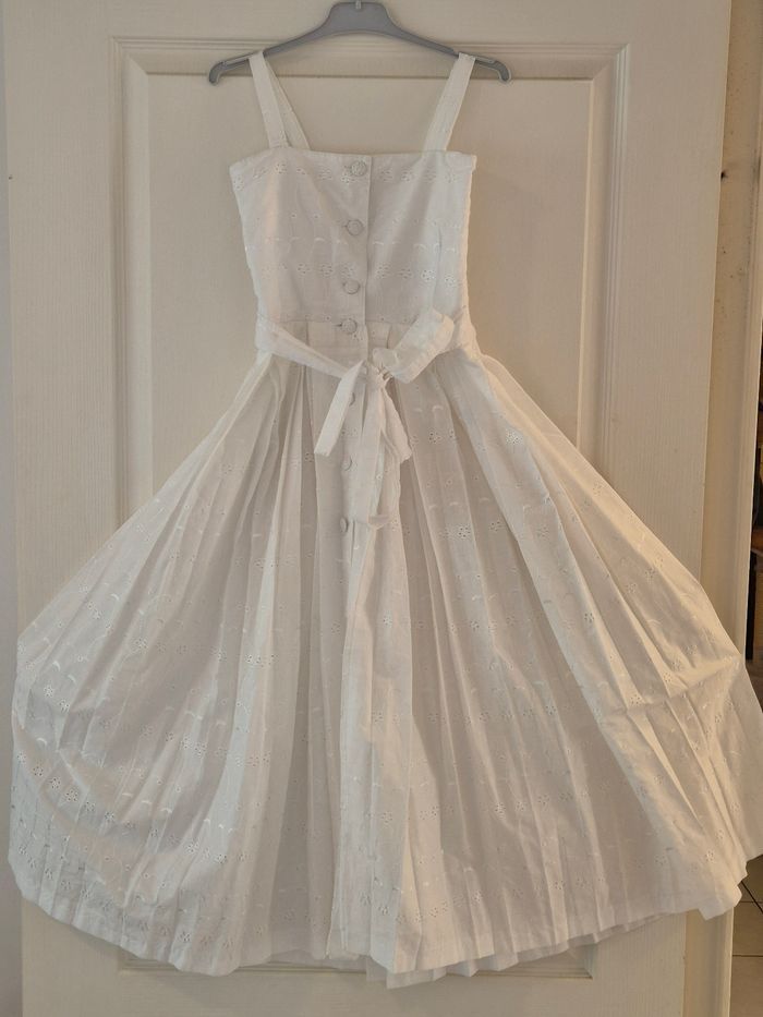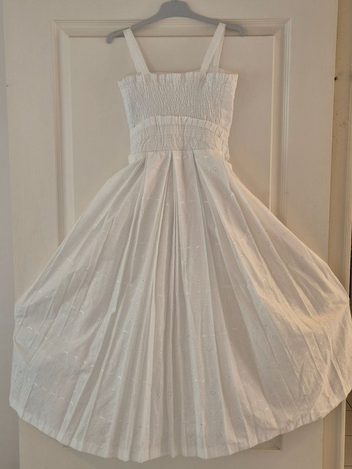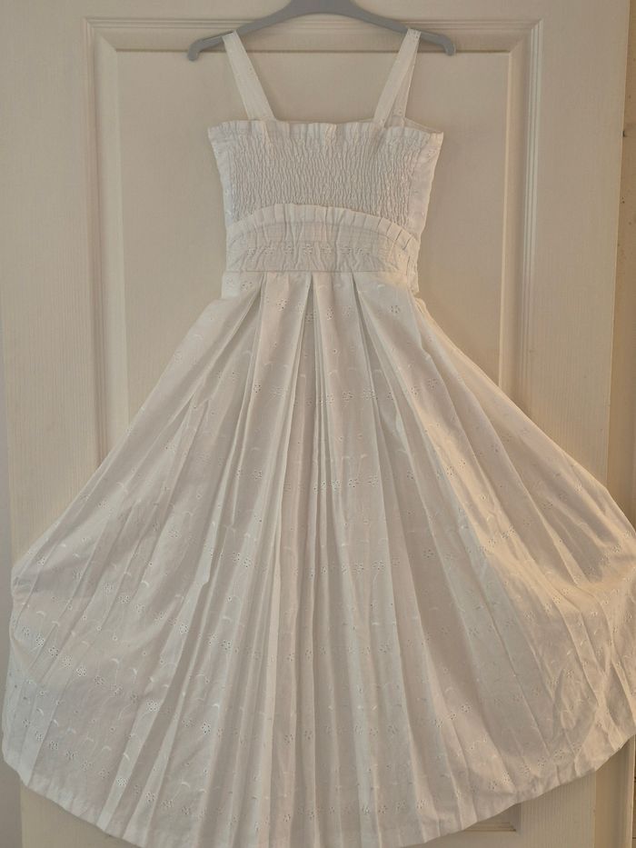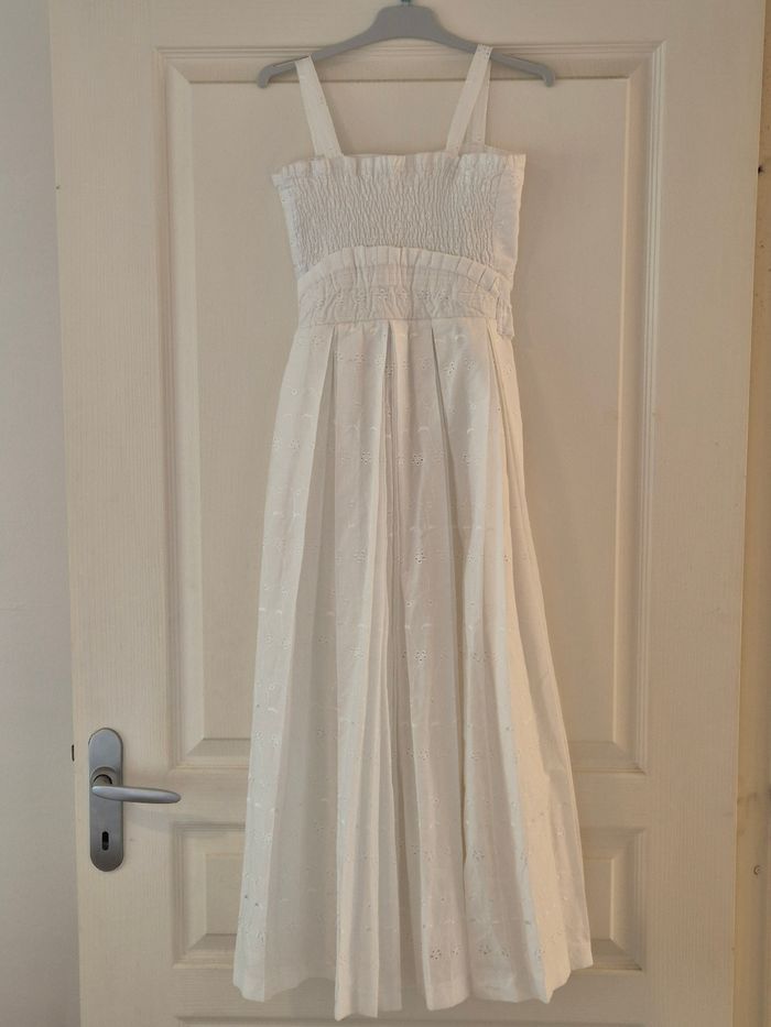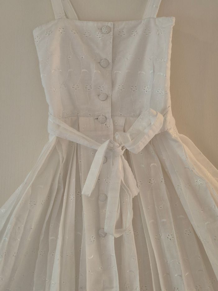 Robe longue créole fille 10 - 12ans blanc avec bretelles. Tissus brodé très haute qualité. Boutonné à l'arrière + noeud (voir photos). Robe idéal pour événement (mariage, baptême, communion, etc...). #robecreole #tissusbroder #créole #créoleauthentique #dody #robefille #robelongue #nantes #nantesmaville