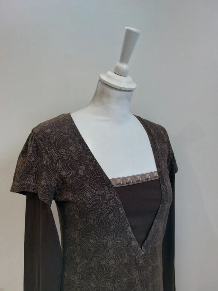 Robe manches longues en coton marron à motifs 38-40 - photo numéro 2