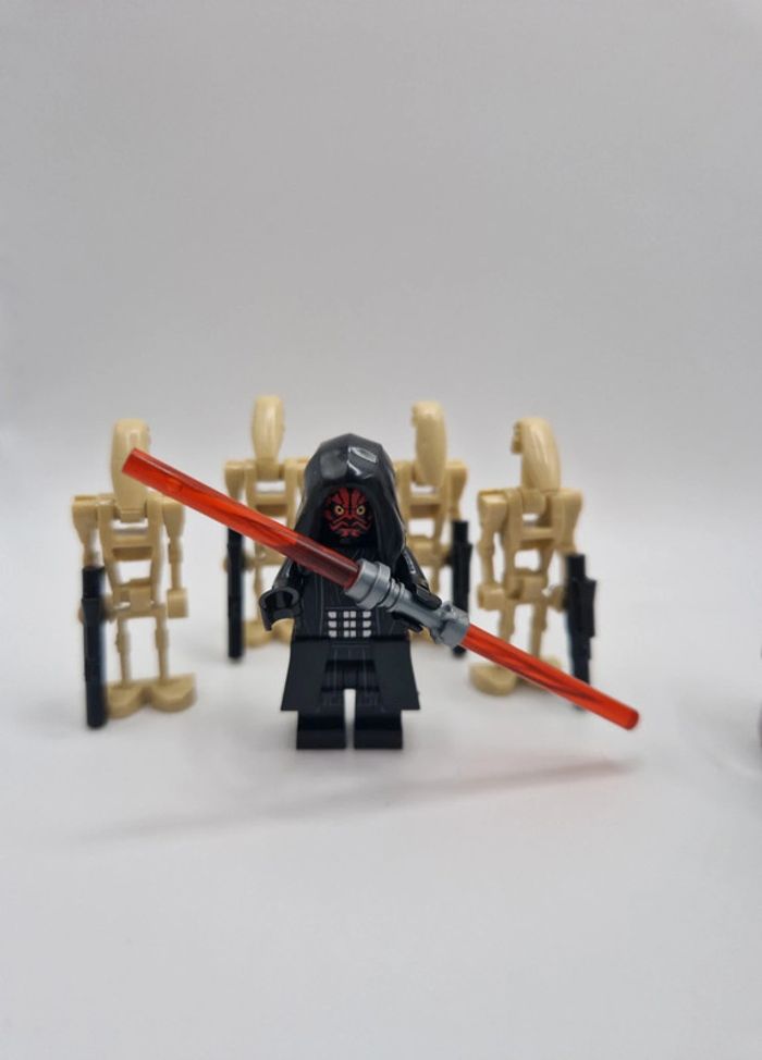 Figurines type lego Sith Dark Maul + 4 droides de combats star wars D'autres figurines disponible en annonce ou sur demande n'hésitez pas à me demander pour la création de lot :) #raph21850starwars