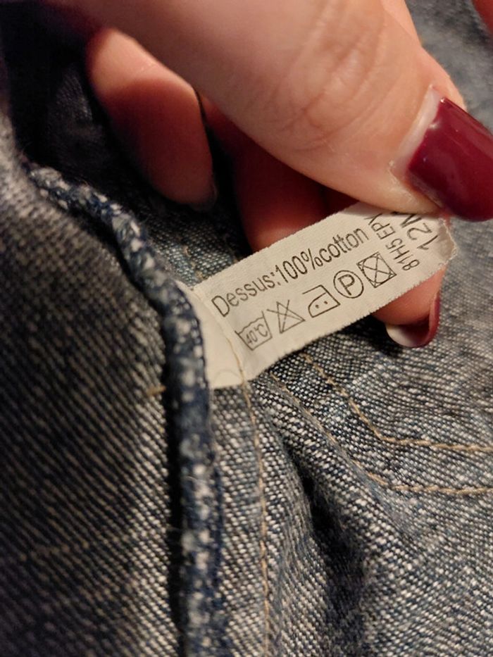 #3ansenfantprisciya51 Effet jean vieilli avec fermeture 100% coton Sans manche A été porté 1 fois avec une chemise blanche.