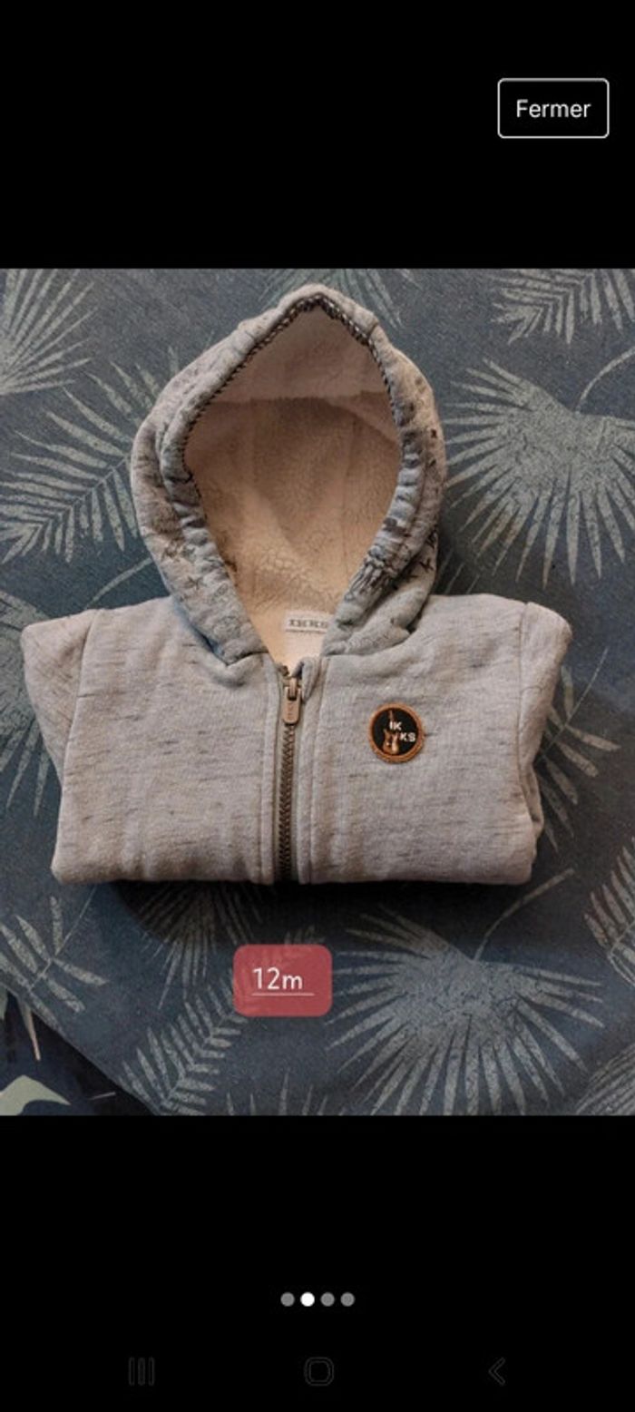 Gilet zippé à capuche ikks chaud molletonné  12 mais neuve - photo numéro 4