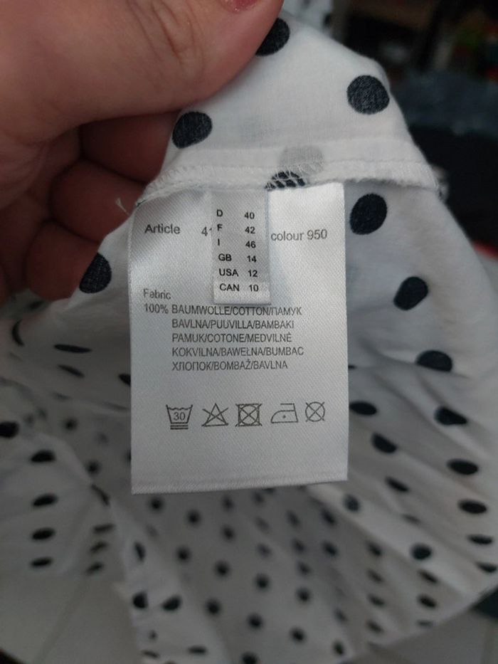 #t40femmeprisciya51 Neuve jamais lavée ni portée Blanche points noires T40 Max & more