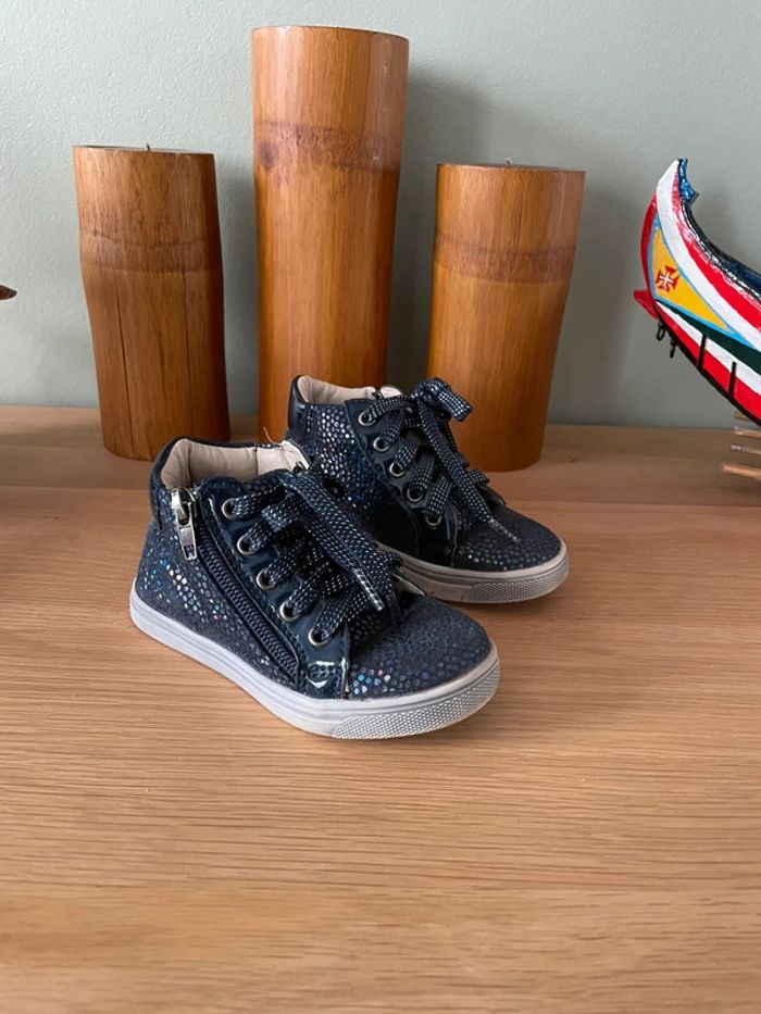 Vends une paire de chaussures mi basket, mi bottines Orchestra. Coloris bleu marine, Taille 24