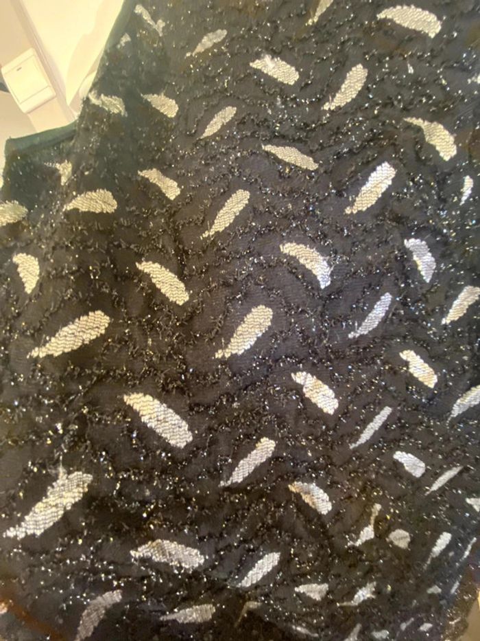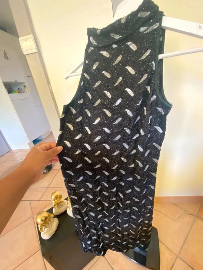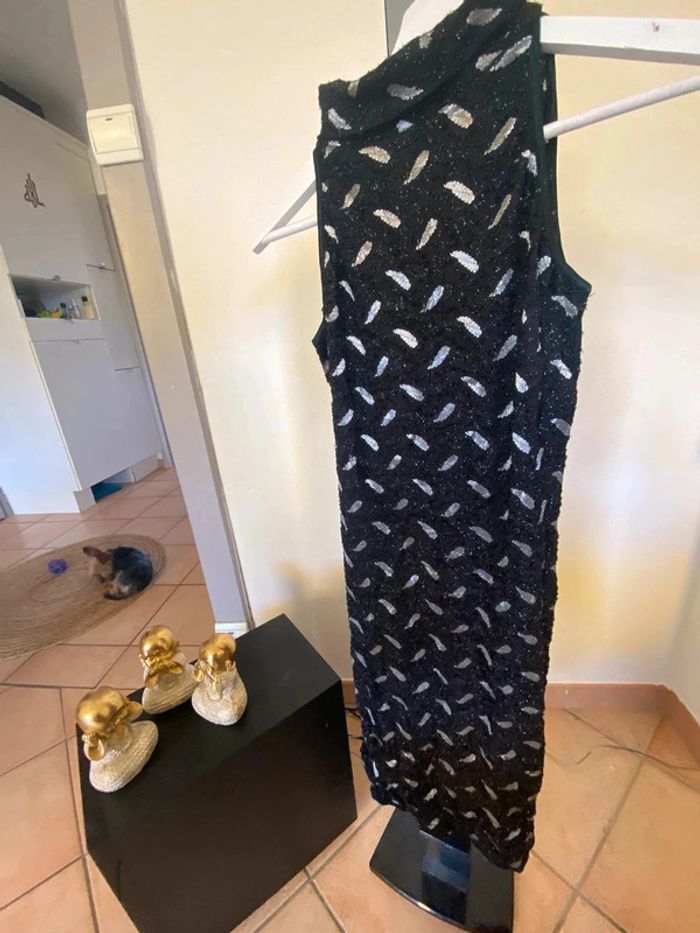 Robe d’hiver à paillettes col roulé moulante sans manches motifs plumes L - photo numéro 3
