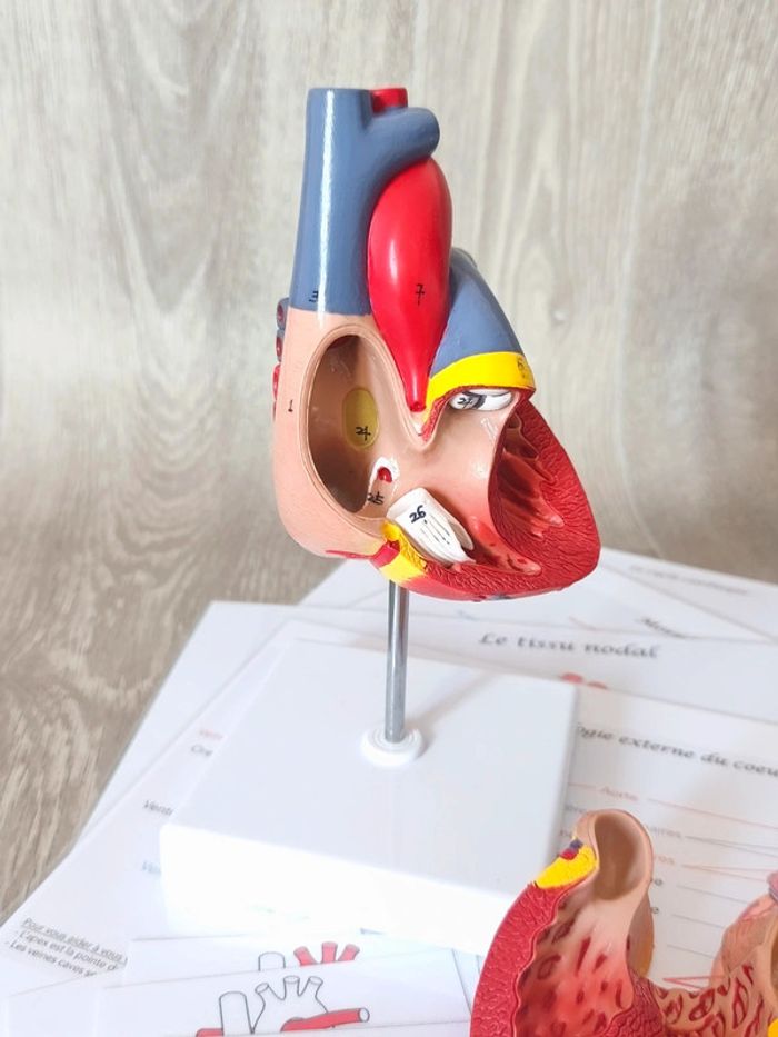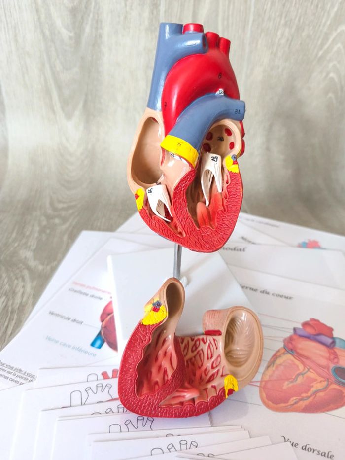 🧡 Compte Pro 🧡 ✨Modèle anatomique du cœur humain Neuf ! ✨Taille : 21 x 11 cm 👉Ce modèle anatomique montre visuellement comment le cœur humain est structuré. 👉La fonctionnalité du cœur peut être clarifiée en détail grâce à la représentation de toutes les valves et cavités. 👉Idéal en classe, ce cœur humain, permet à tous vos élèves une étude simple et complète des différentes parties anatomiques qui le constituent. 👉Les ventricules, les oreillettes, les veines, les artères et l'aorte sont représentées de manière très détaillées. 📍1 Véritable cœur, démontable. 📍15 cartes de nomenclature. 📍1 fiche A4 de la morphologie interne du cœur. 📍1 fiche A4 de la morphologie externe du cœur. 📍1 fiche A4 du tissu nodal. 📍1 fiche A4 du cycle cardiaque. 📍Papier 250G plastifié pour une bonne tenue ! 📍Neuf. 👉Pour trouver d'autres activités c'est par ici : 🔎#elisabethdesignCorpsHumain 📫⏳ Envoi rapide et soigné le jour même de l'achat dans la mesure du possible! 🤝 Frais de port ajusté au plus bas. Ref : 9#-11#-Anatomie