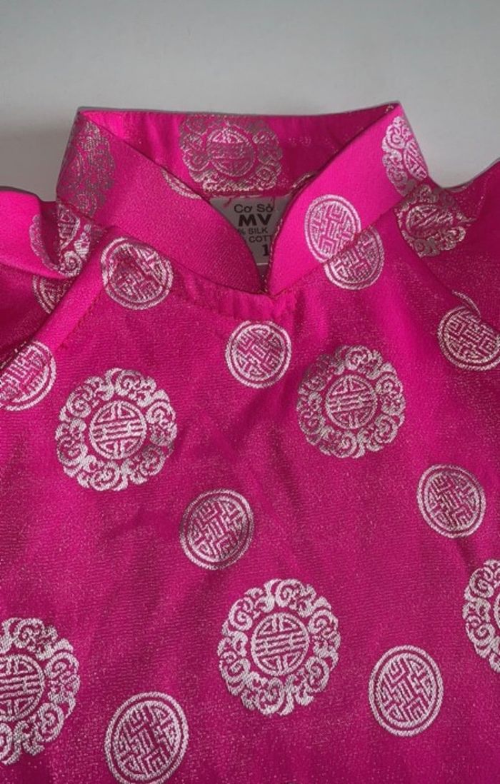 Robe traditionnelle chinoise rose et argent NEUF Taille :24/36 Mois couleur : rose et motif argent