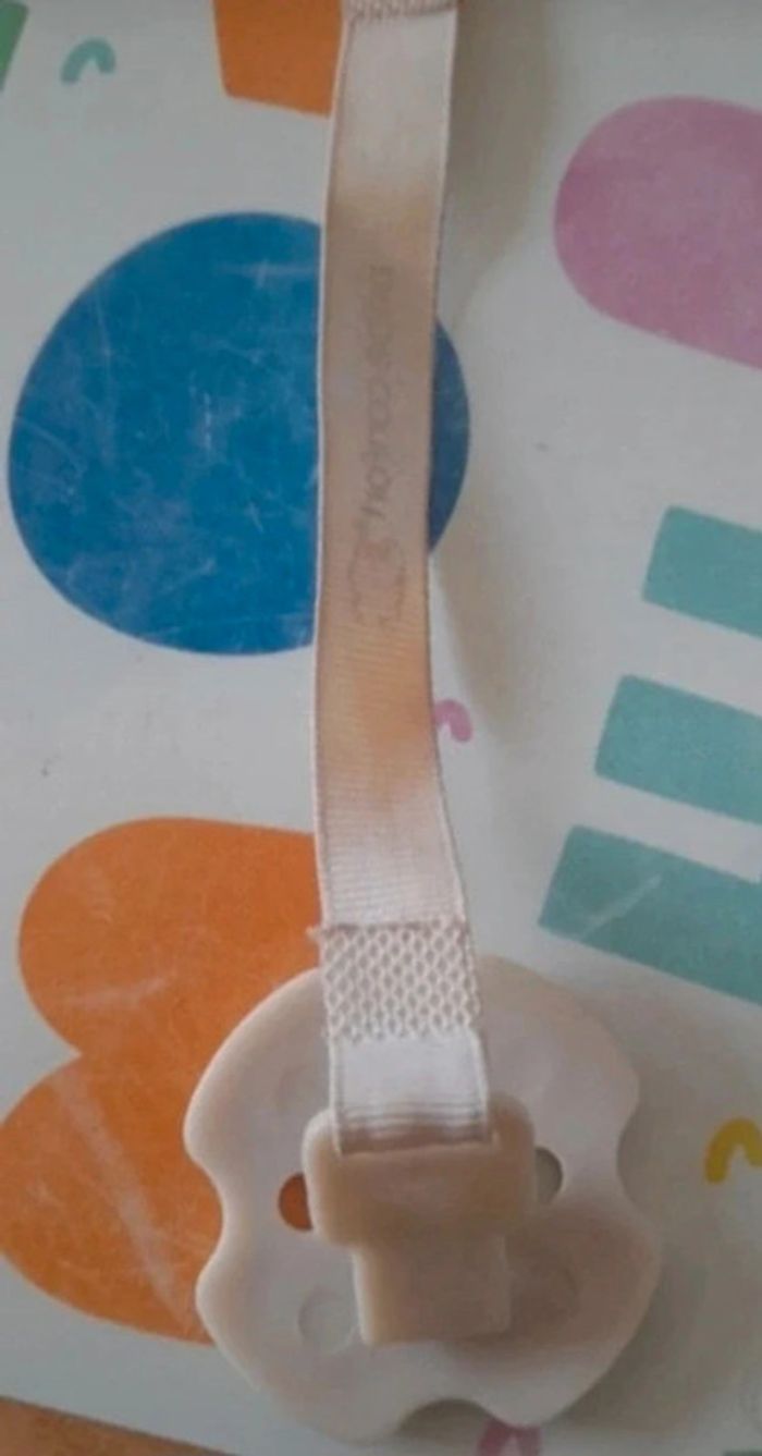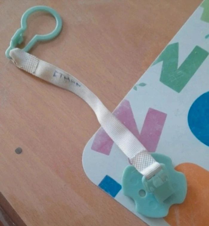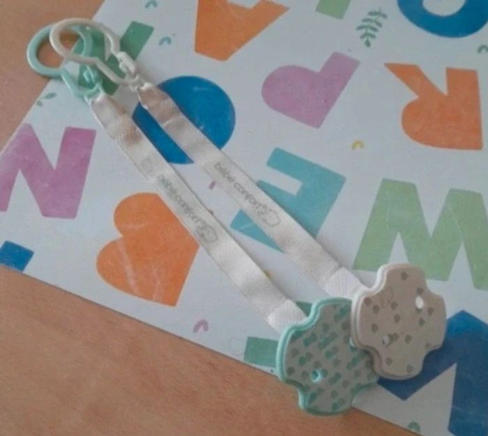 Lot de 2 attaches tétines bébé confort Une entièrement blanche et une verte ficelle blanche traces de stylo. #Sally0851bebe #Sally0851maternite #Sally0851accessoires