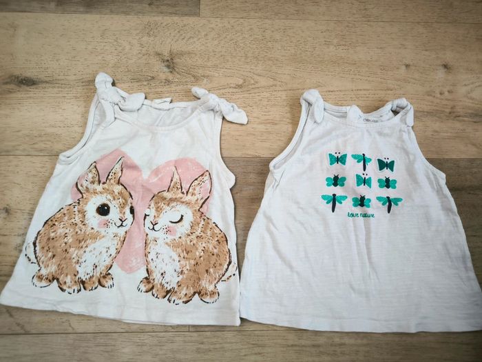 Lot de 2 debardeurs de la marque obaibi et h&m en taille 18mois et 9-12mois 80cm. Peu portés. #sdr0vetementsbebe #sdr0vetementsbebe18mois #sdr0teeshirts
