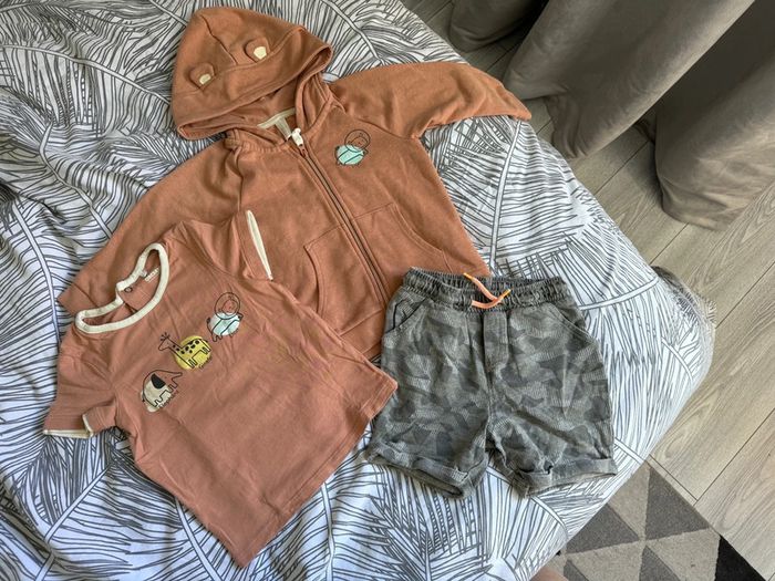 Lot / ensemble 3 pièces Orchestra comprenant un short, un tee shirt et un pull avec des oreilles 🐻. Taille 18 mois - 81cm. En très bon état. #lau_riane69 #ensemblebebe #ensemblegarçon #orchestra #orchestragarcon #taille81cm #taille18mois