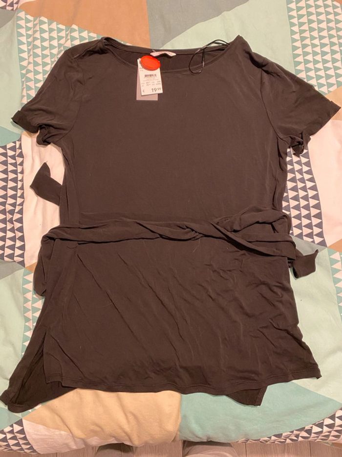 Tee-shirt Camaieu noir à laçage autour de la taille. Neuf avec son étiquette. T.