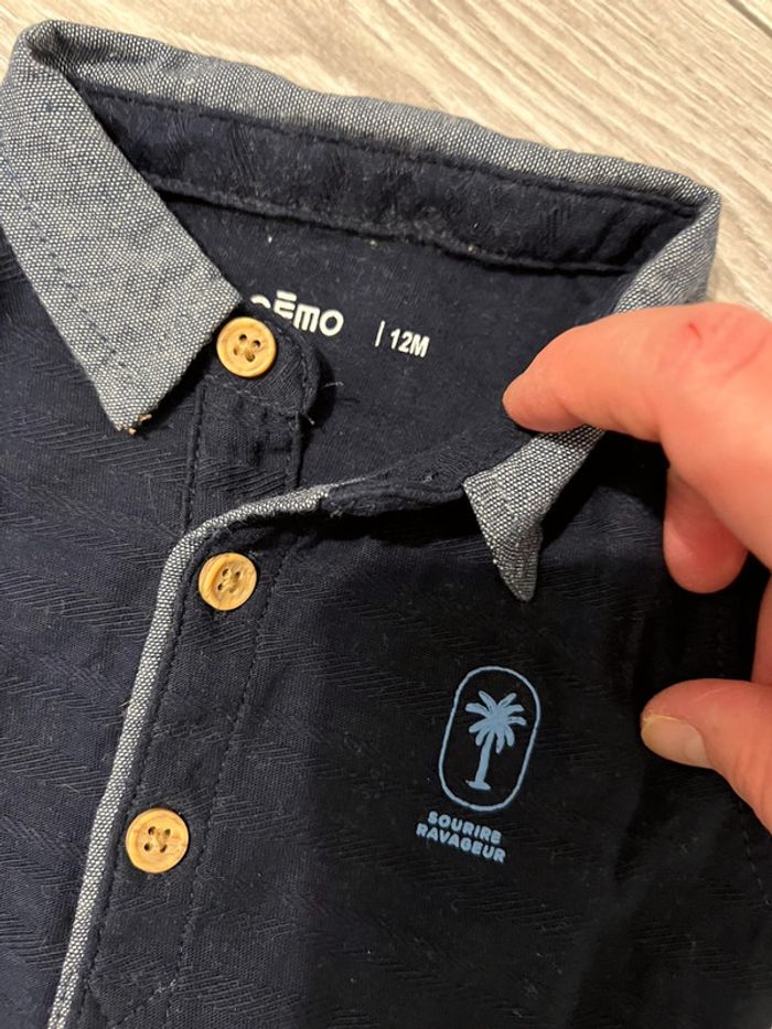 Polo bleu marine Gémo « sourire ravageur ». Taille 12 mois. Jamais porté. #lau_riane69 #polobebegarçon #gemo #taille12mois
