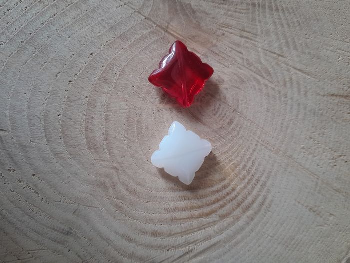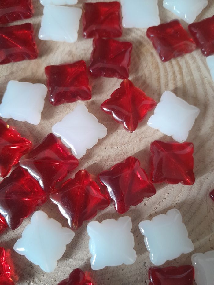 Lot de 50 grosses perles en verre blanche et rouge Dimensions sur les photos. D'autres perles et accessoires de dispo dans mon dressing n'hésitez pas à jeter un coup d'œil .
