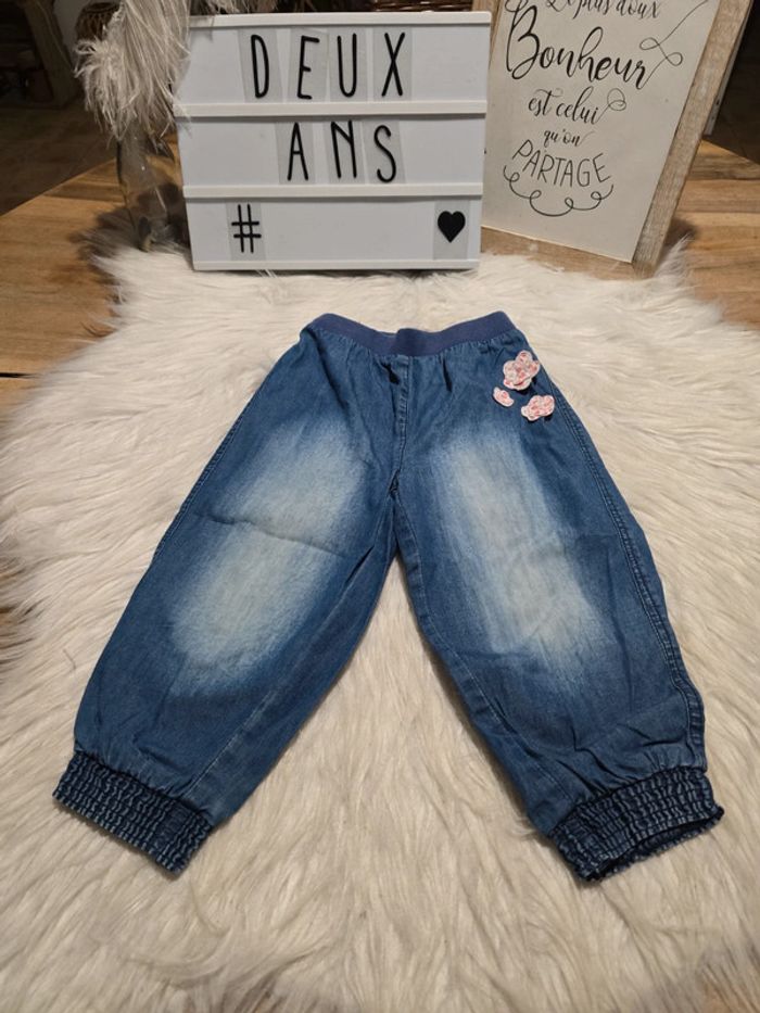Pantalon en coton souple. Élastique au bas des jambes Taille élastique Petites fleurs en décoration Taille 24 mois Marque mes petits cailloux Très bon état #2ansfillebaba18bb