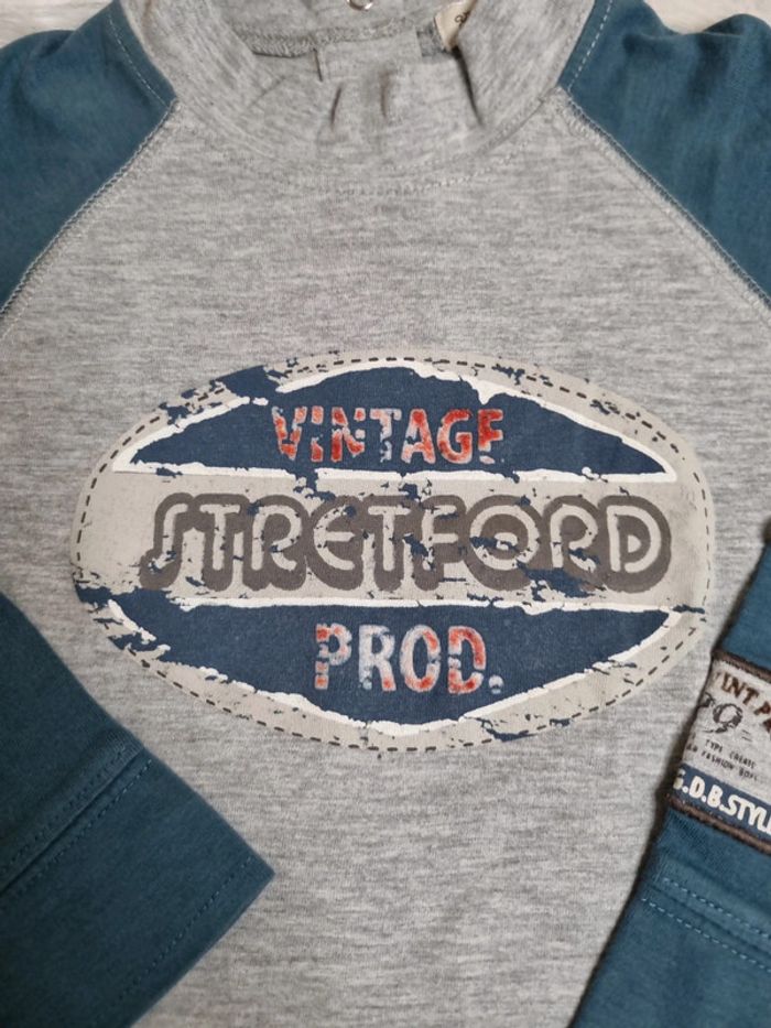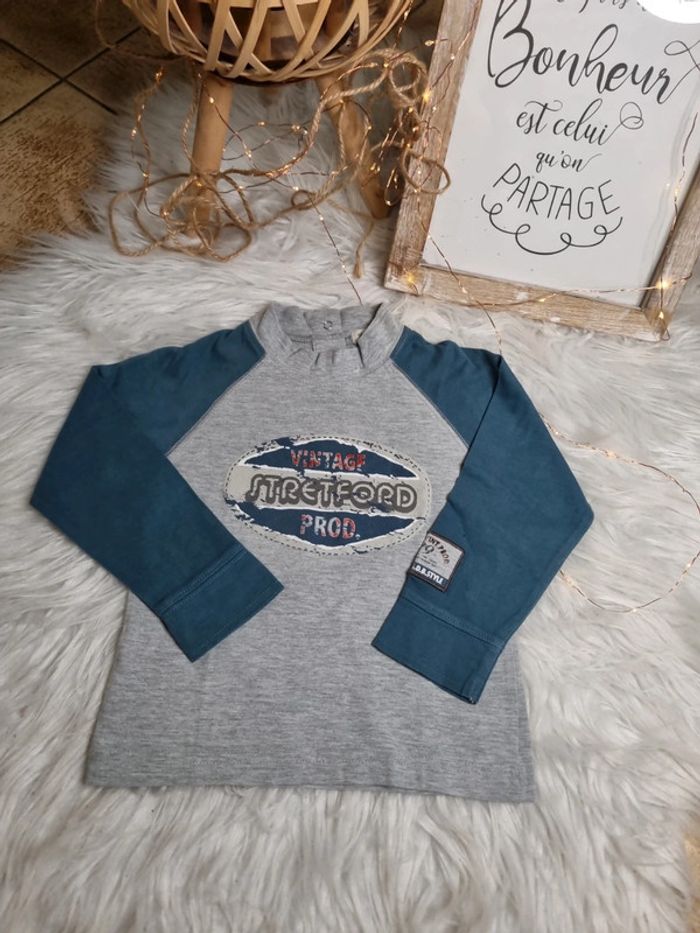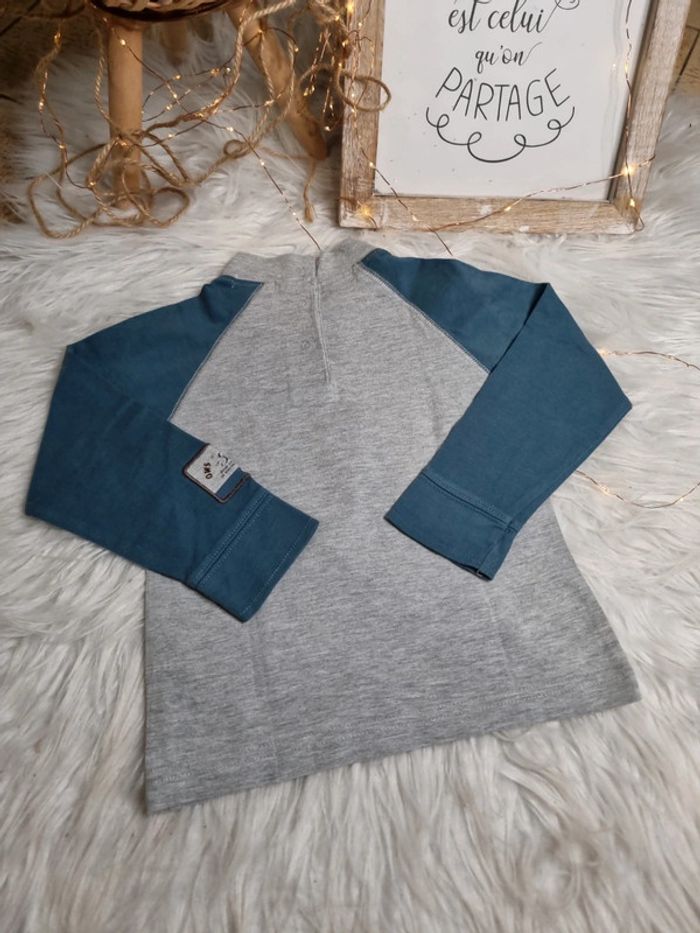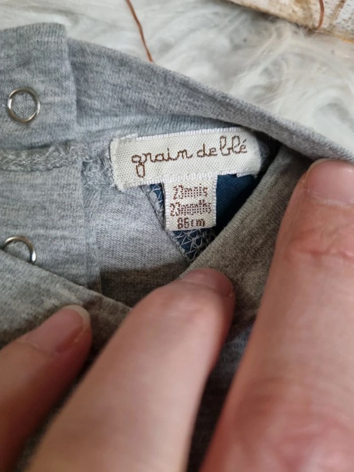 Haut manches longues gris manches bleu Logo effet vieilli 3 pressions dans le dos Taille : 24 mois Marque : grain de blé Très bon état #24moisgarçonbaba18bb
