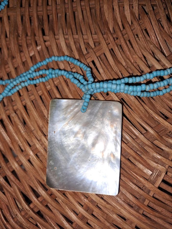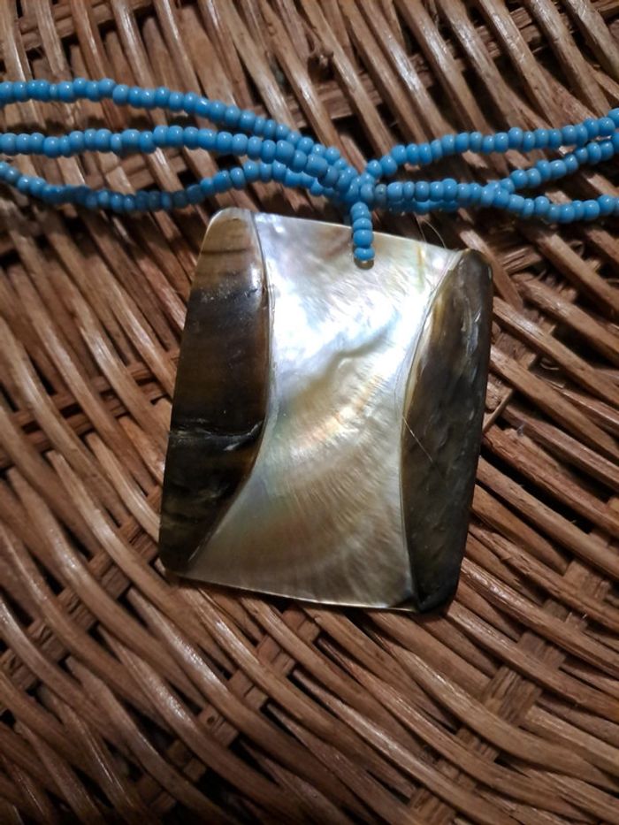 Collier pendentif nacré. Perles bleus #bijouxmadamepirate
