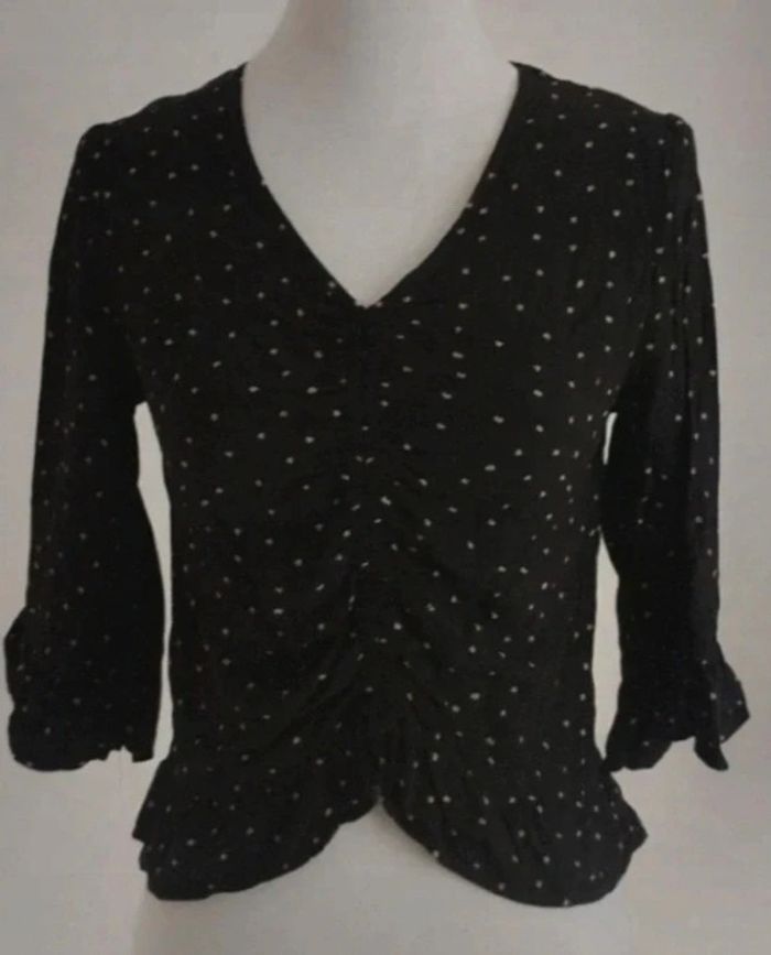 Blouse manches 3/4 col en V noire Kiabi taille 14ans