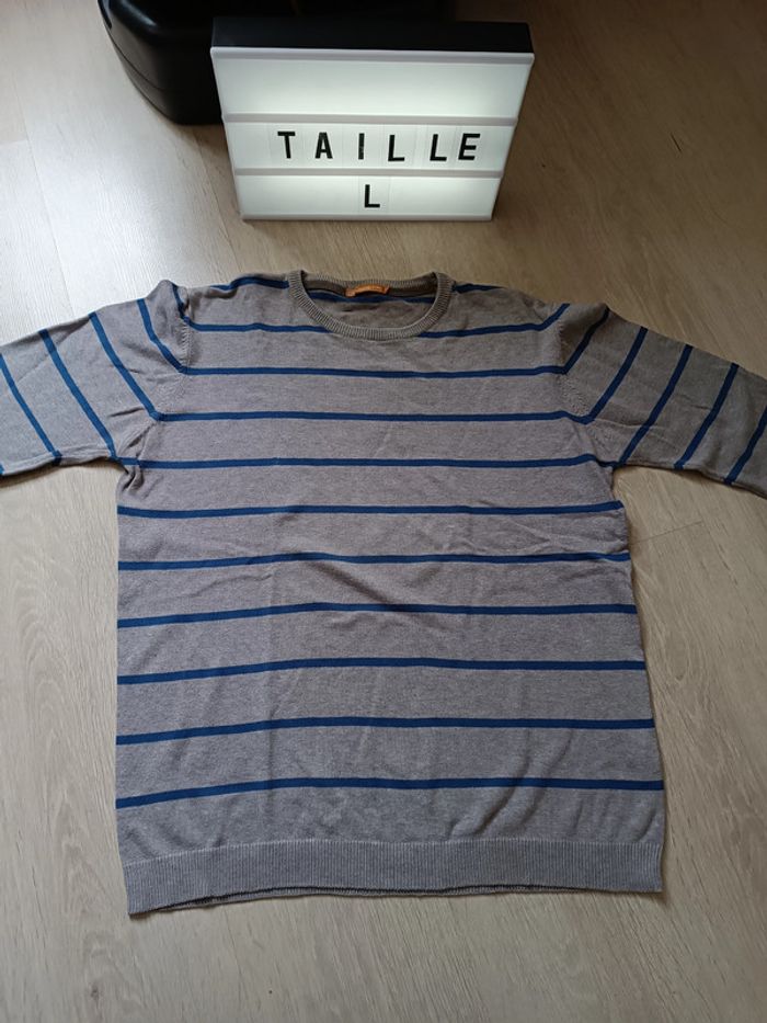 Pull gris a rayures bleu taille L pour homme - photo numéro 1