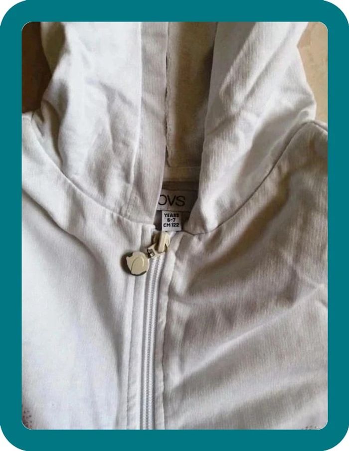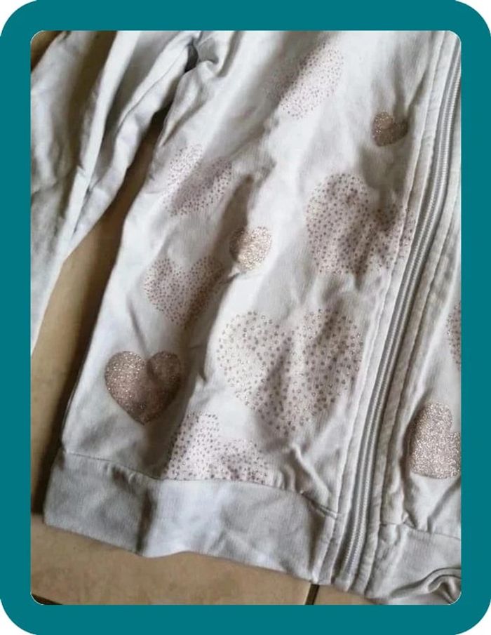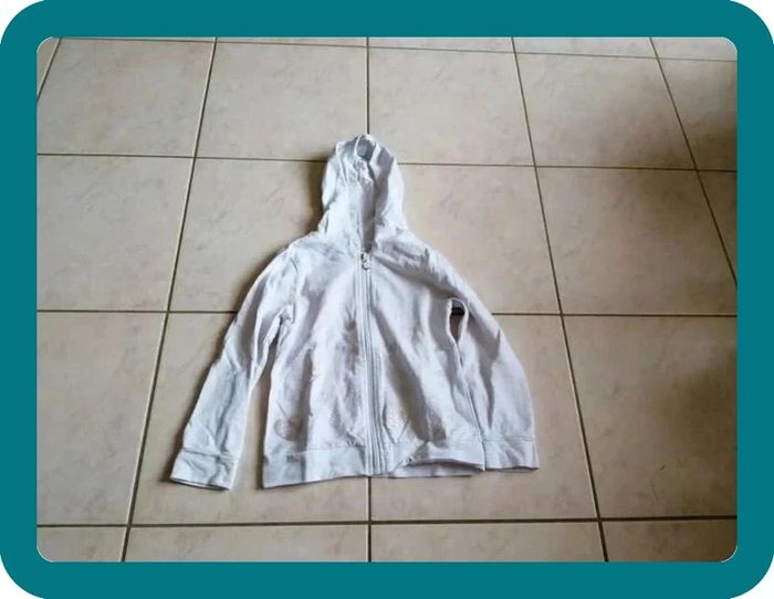 Gilet à capuche motif cœurs. Très bon état hormis la peinture qui part de la tirette. OVS. 6-7 ans. #manue57260fille6ans #manue57260fille7ans
