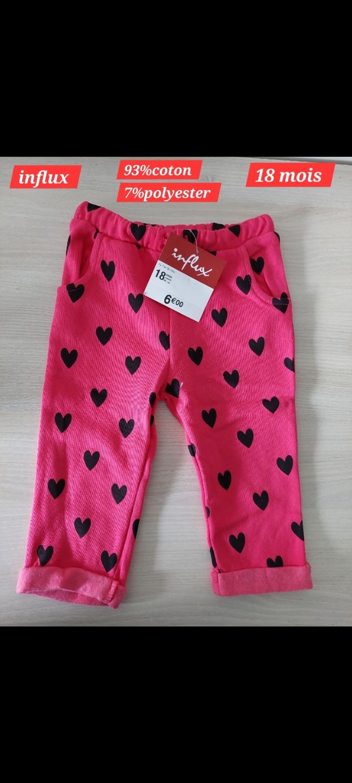 Vends Pantalon avec cœurs fille 18mois Il est en très bon état et il a été mis Maison non fumeur
