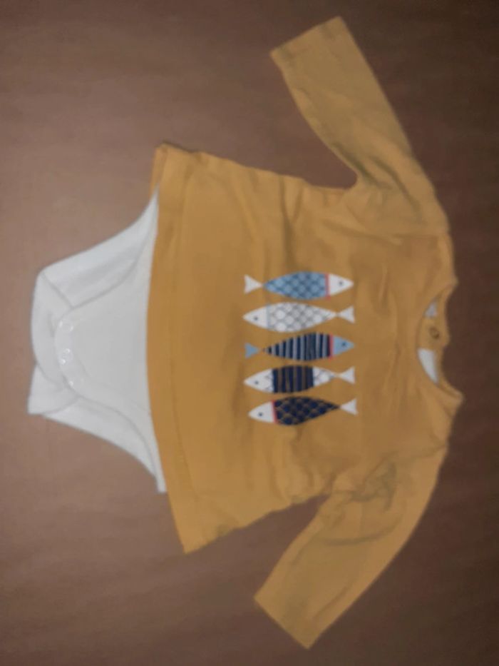 Bonjour Je vends un tee-shirt manches longues avec bodie #let2204bebe1mois