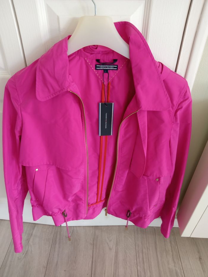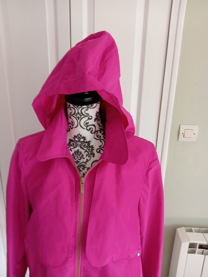Coupe vent taille L, avec fermeture zippée devant, poches, capuche, cordon de serrage sur le bas longueur 60 cm, ideale pour les journées venteuses, neuf étiquette encore accrochée