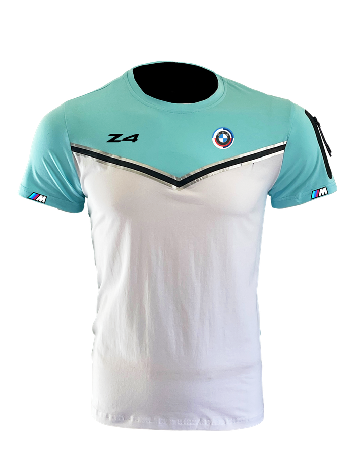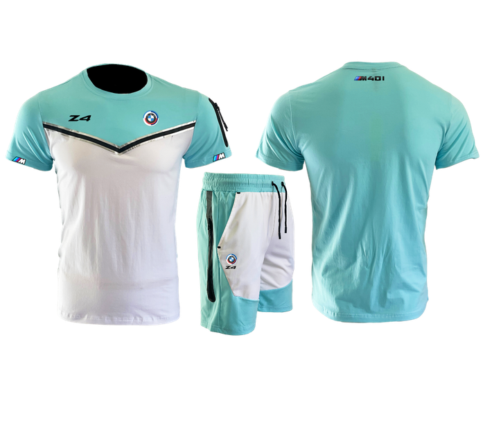 maillot et short homme 2024 logo BMW Z4 bleu turquoise blanc X-044 M&2